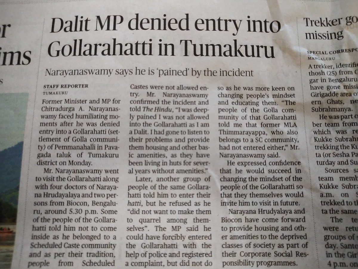 Roughly 50 KMs from Bangalore. If an elected MP gets this, Imagine a powerless dalit girl or boy.