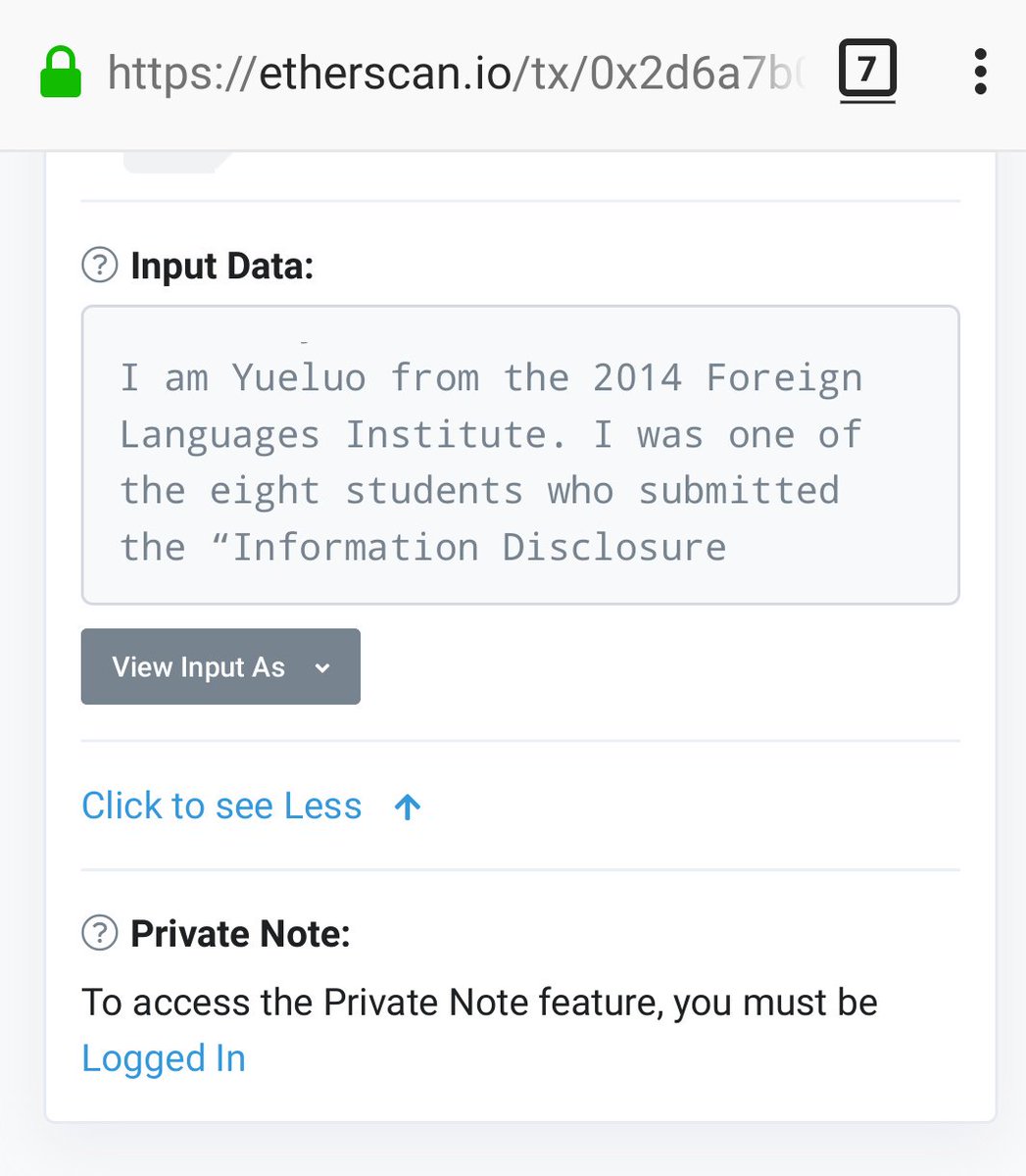 ← Here is the message by student on Etherium block chain etherscan.io/tx/0x2d6a7b0f6…